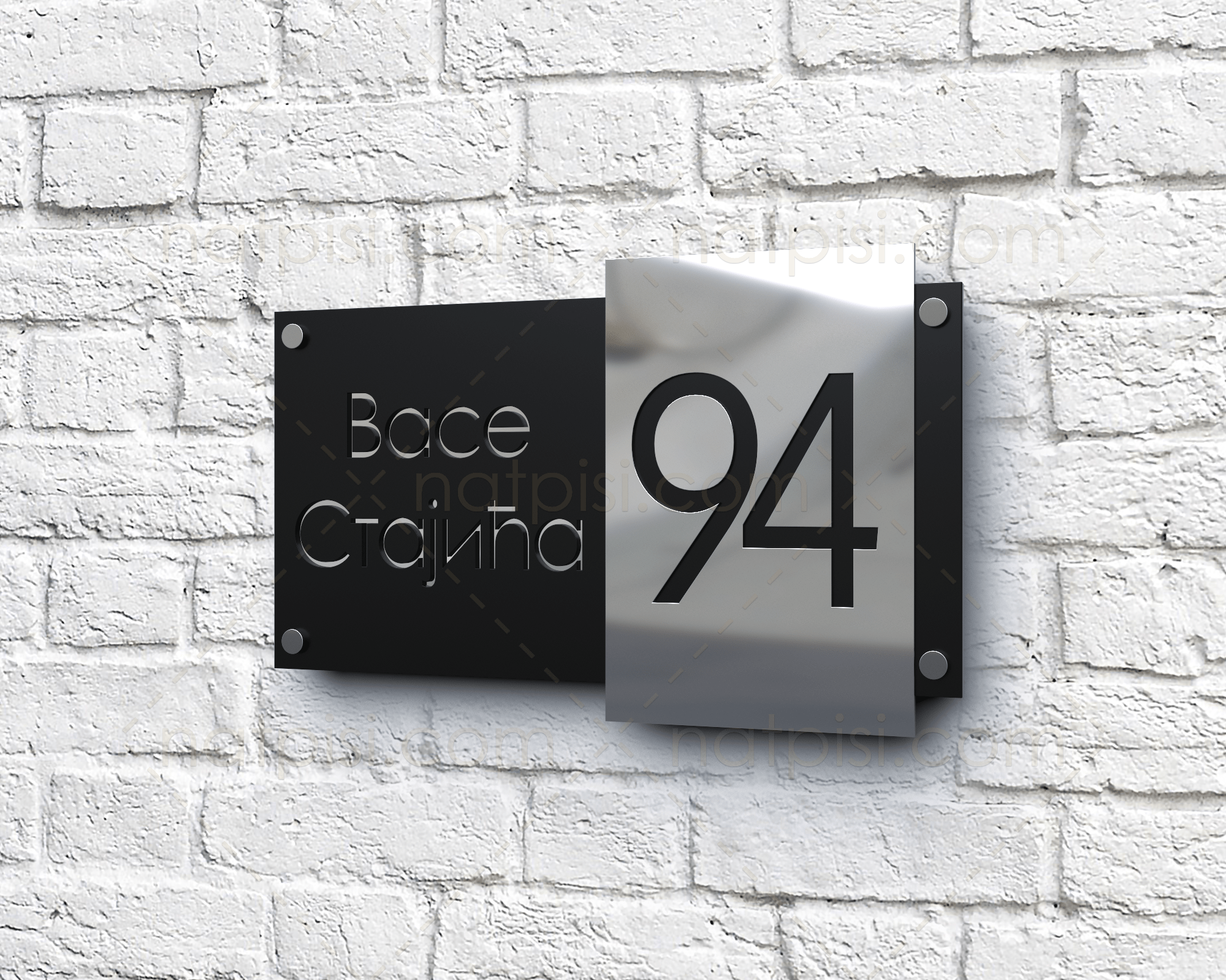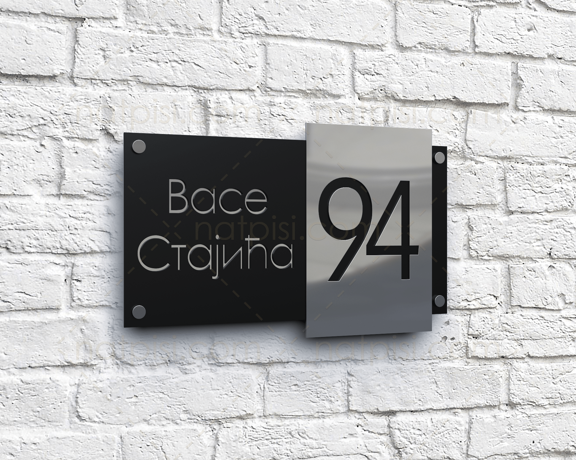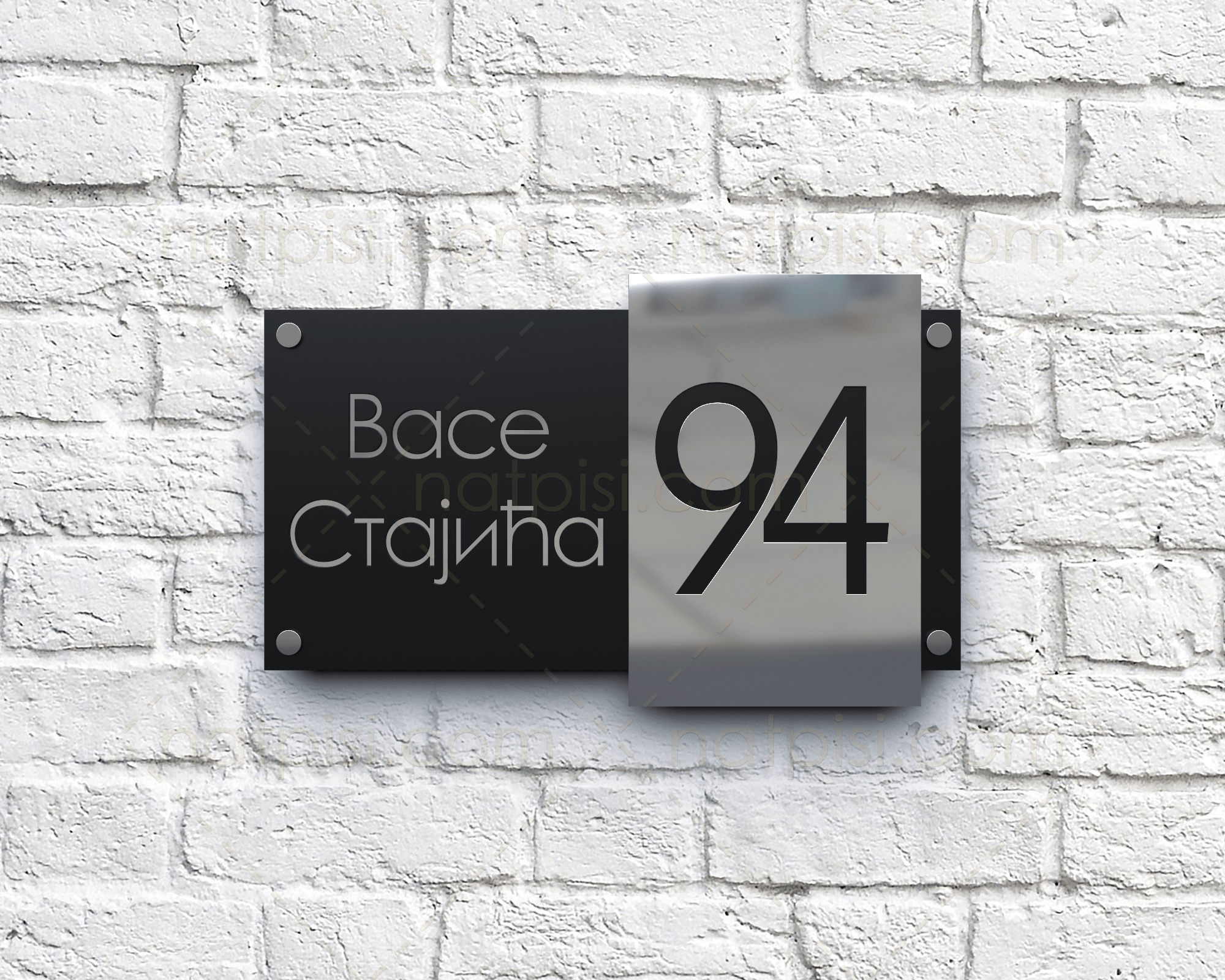 * Pozadinski sloj i prednji detalj( broj kuće ) se izrađuju od istog materijala. Ako odaberete pozadinski sloj srebrno ogledalo, i prednji deo oko broja će biti srebrno ogledalo.
