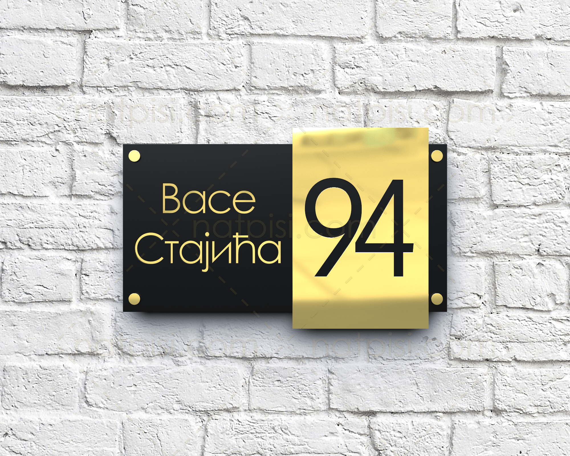 * Moderan kućni broj sa nazivom ulice izrađen od 3 sloja pleksiglasa debljine 3mm, u crnoj mat ili sjajnoj završnoj obradi sa detaljem zlatnog ili srebrnog ogledala.