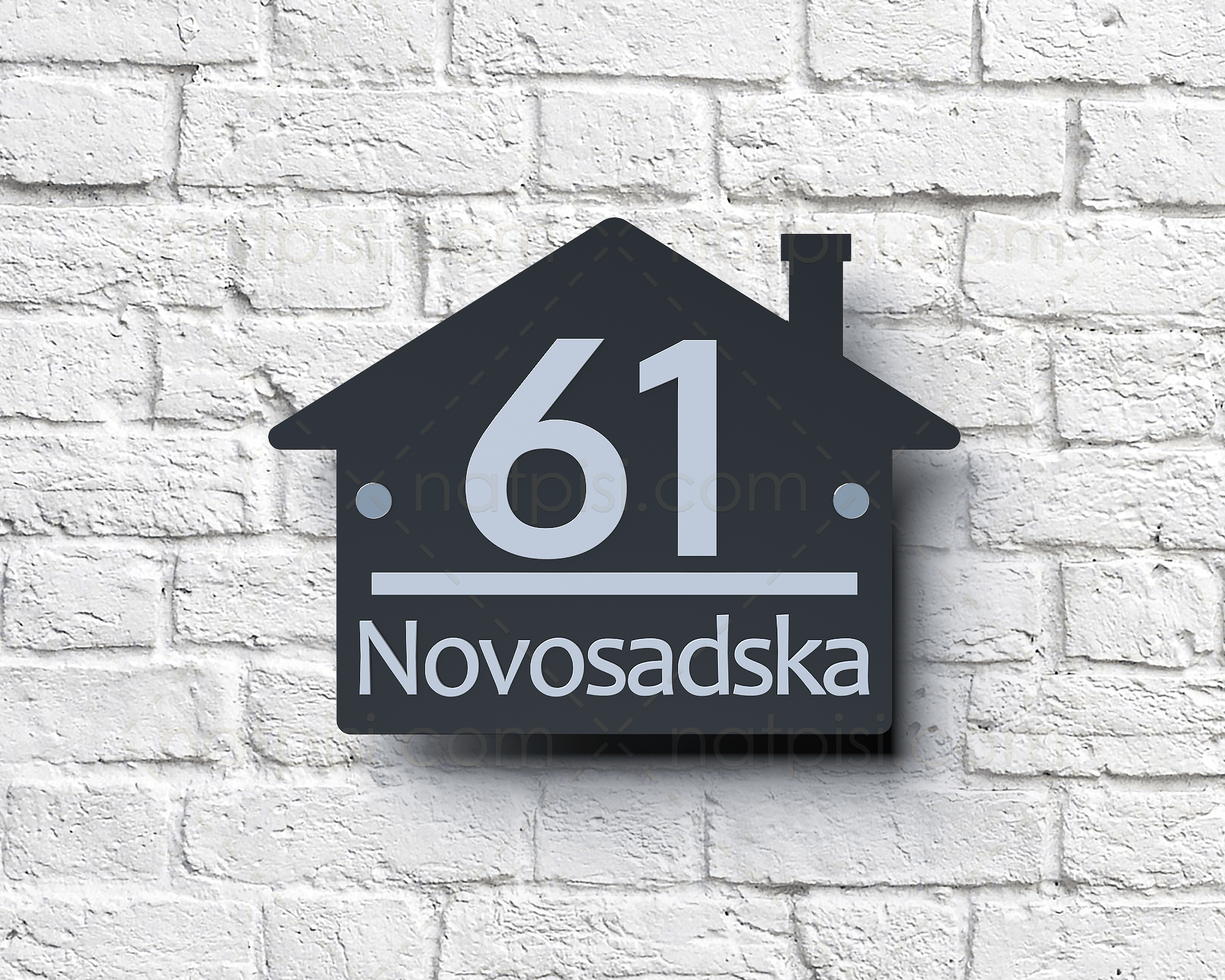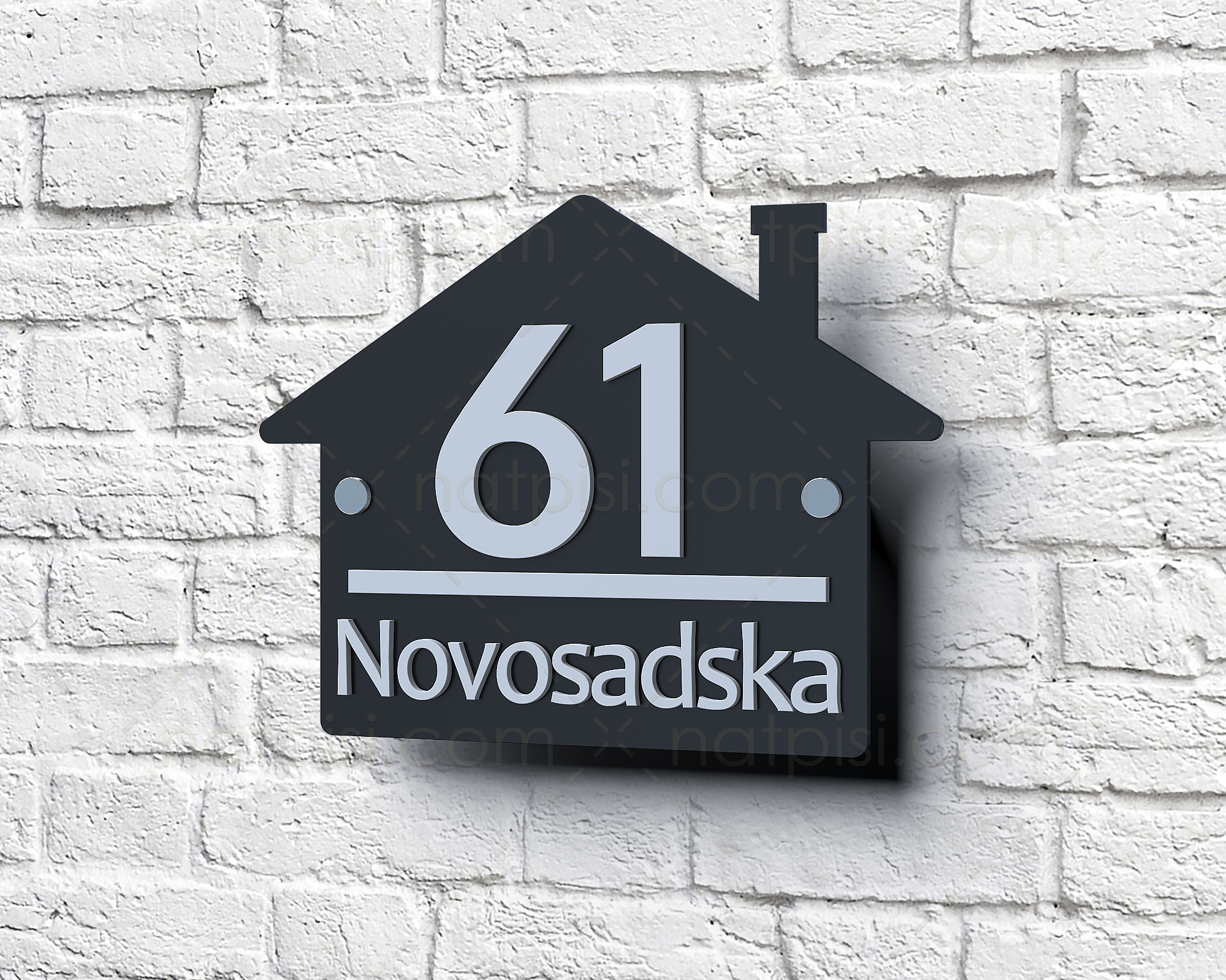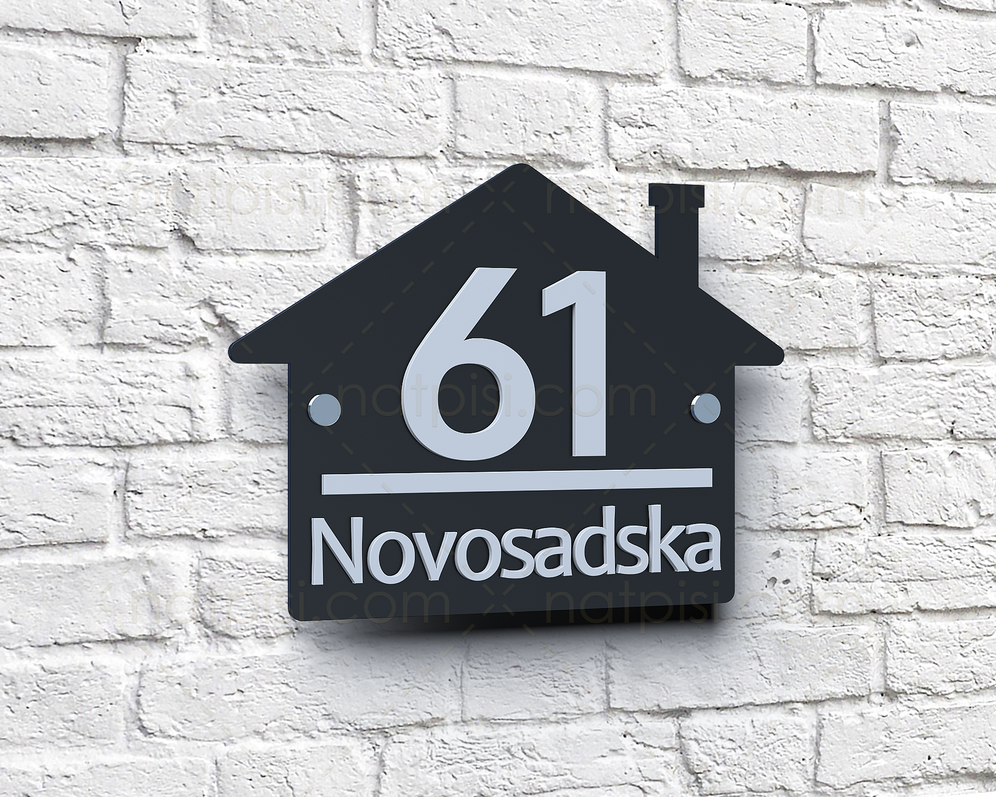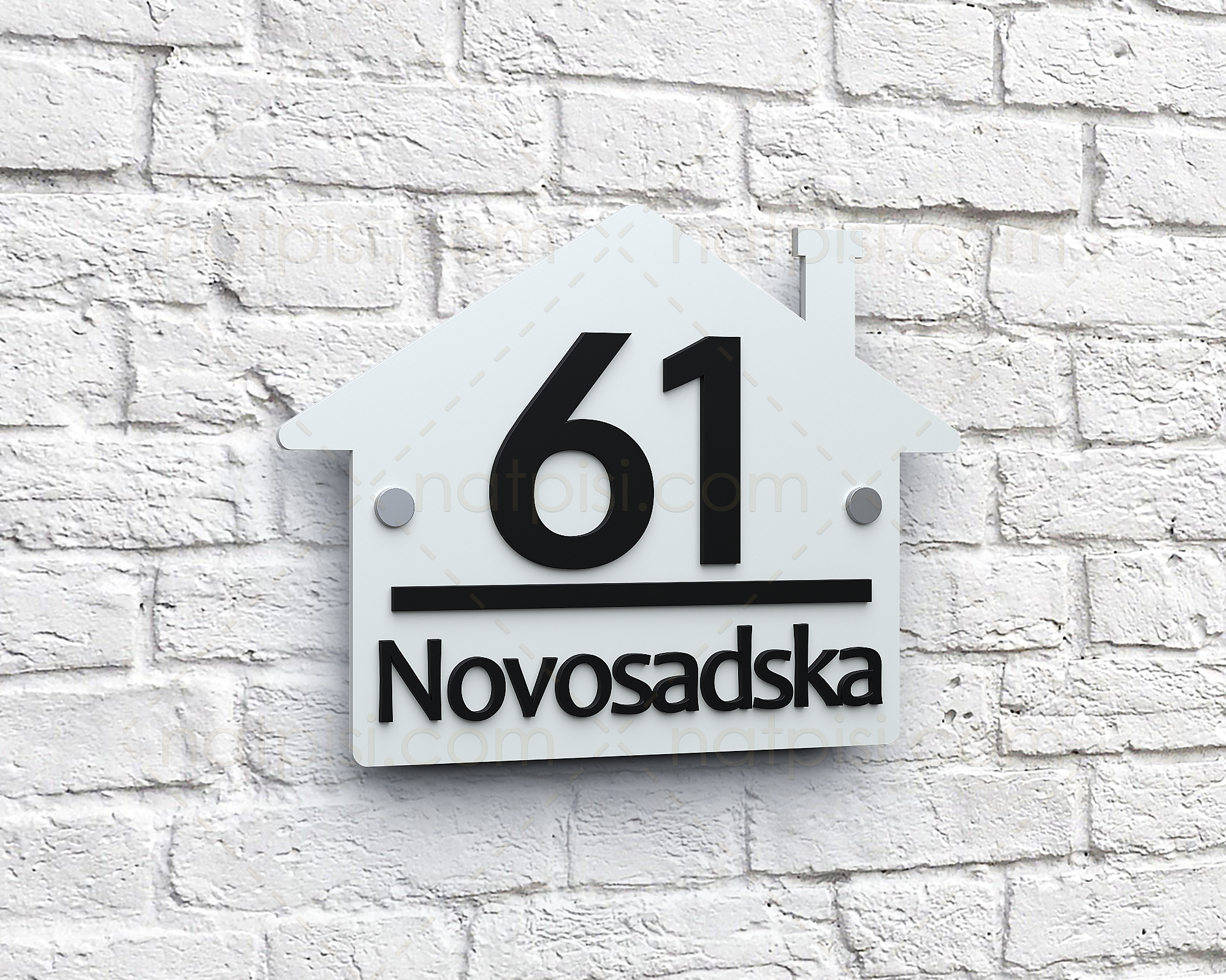 * Moderan kućni broj sa nazivom ulice izrađen od 2 sloja pleksiglasa debljine 3mm.