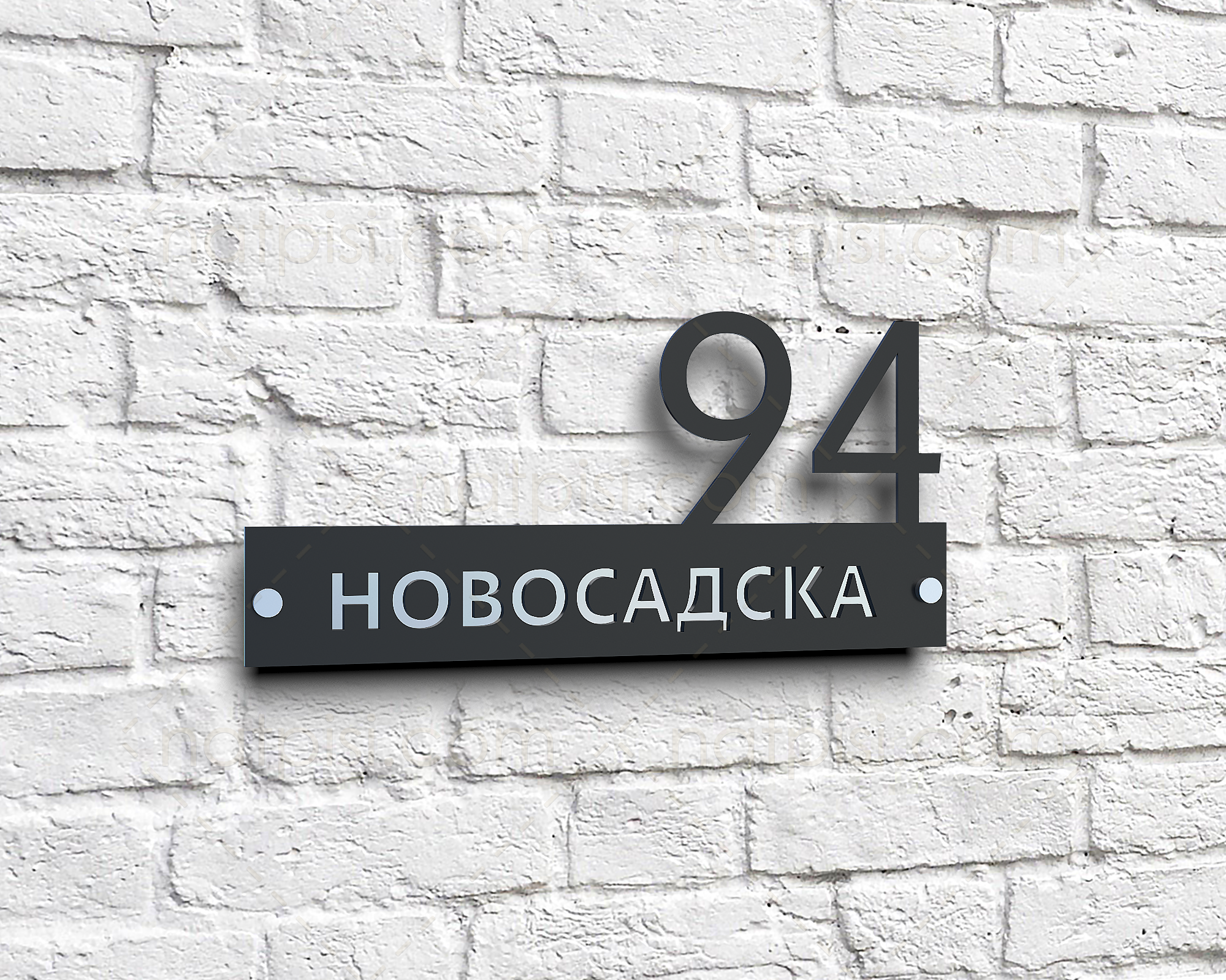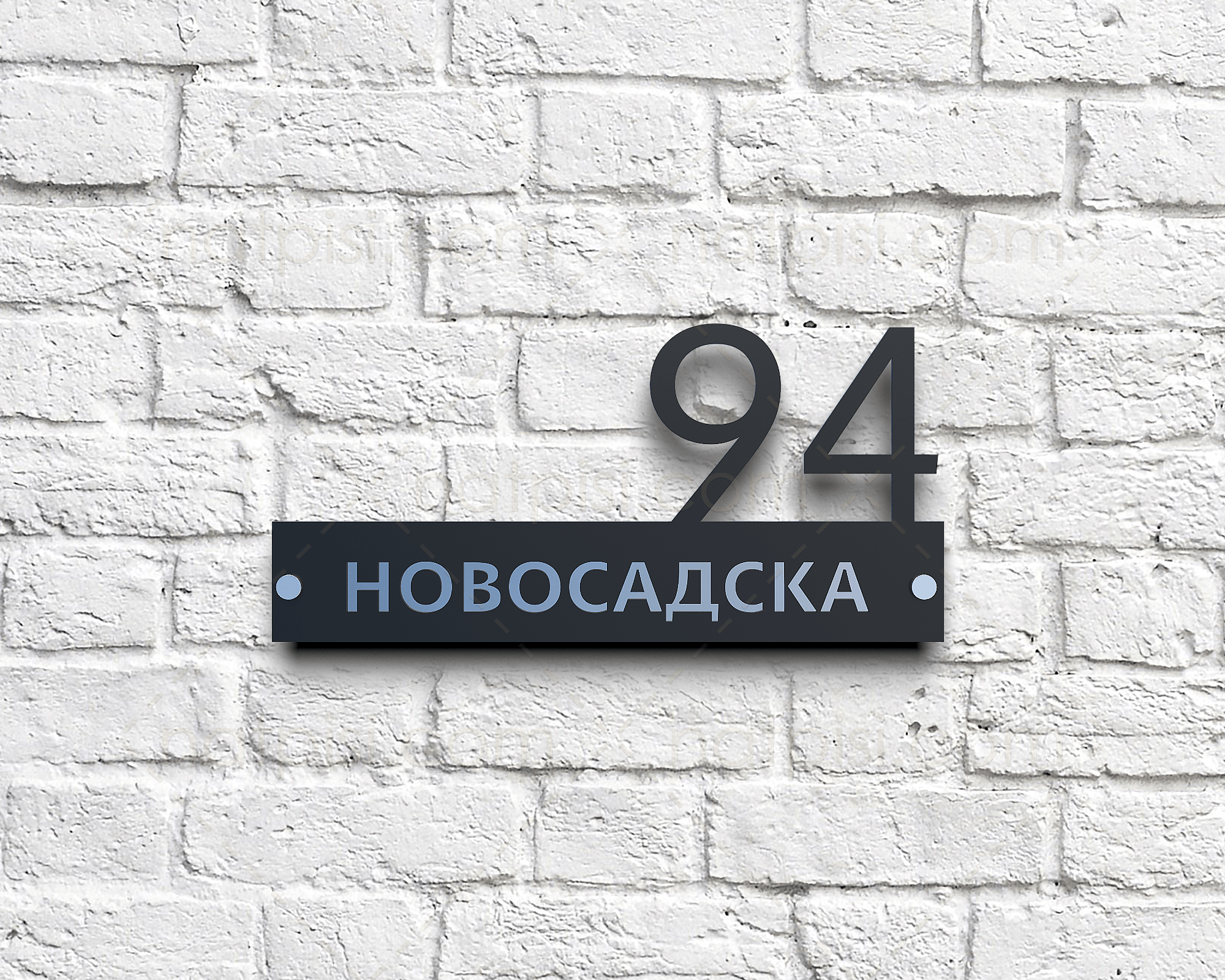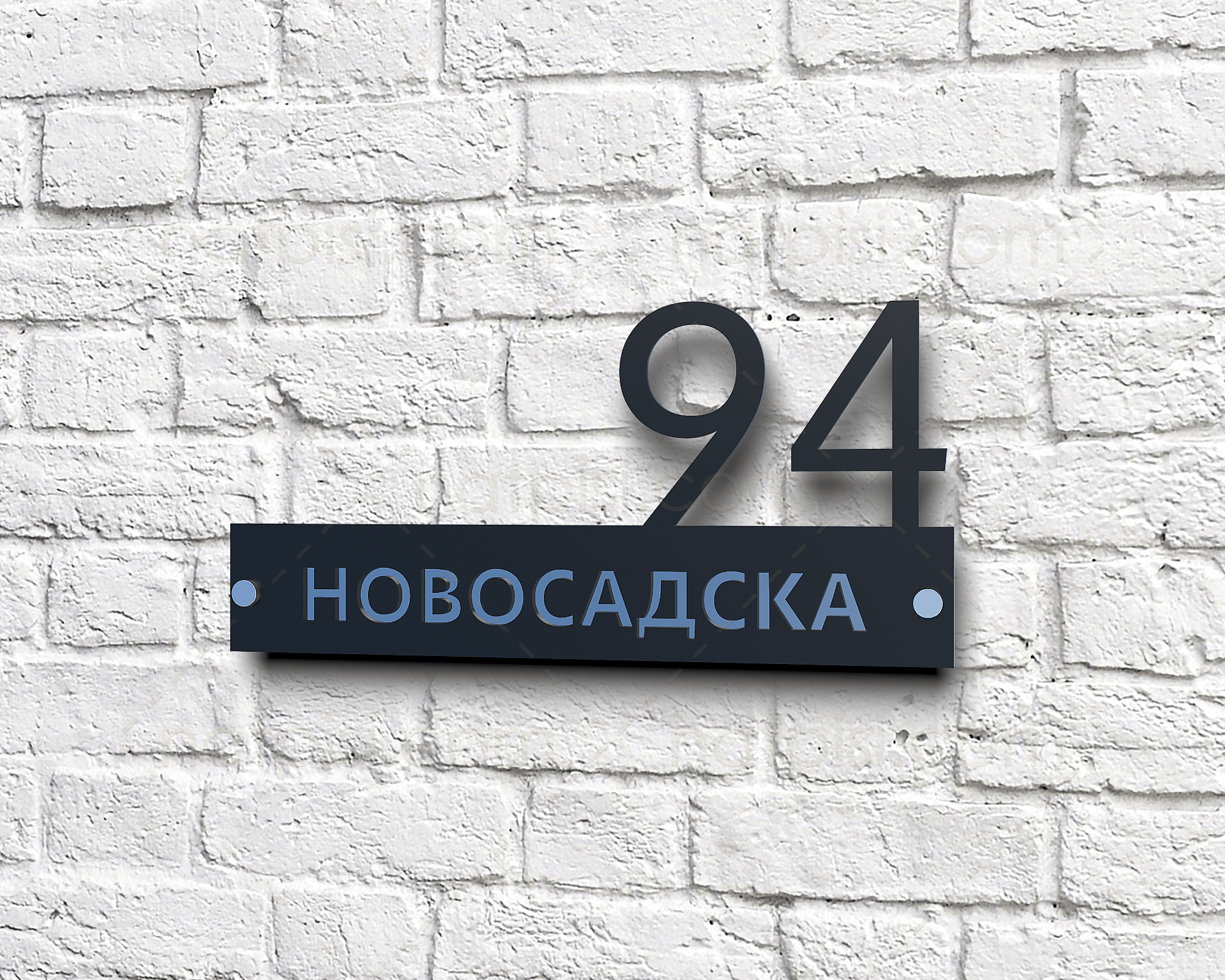 * Moderan kućni broj sa nazivom ulice izrađen od pleksiglasa debljine 3mm, u crnoj mat ili sjajnoj završnoj obradi.