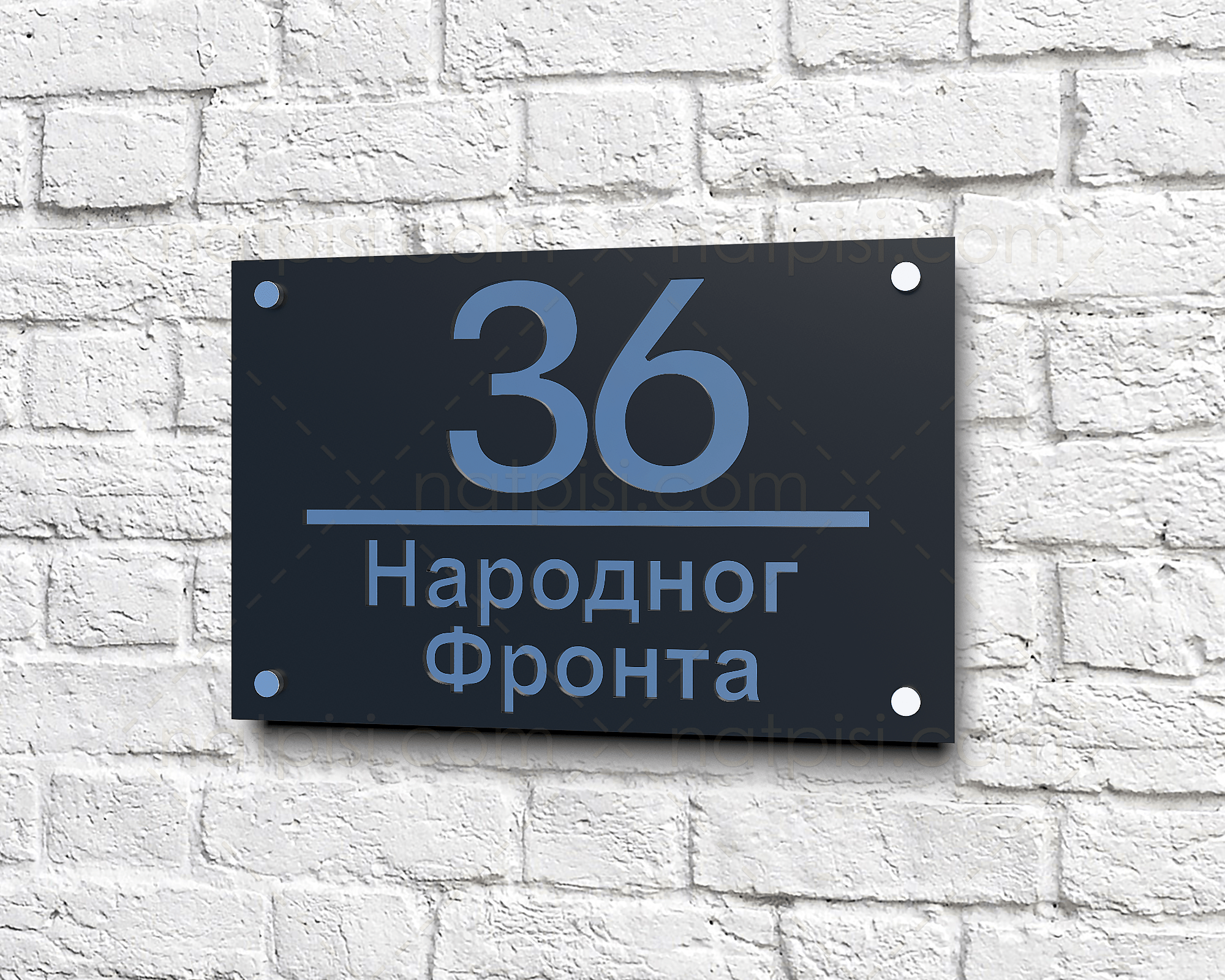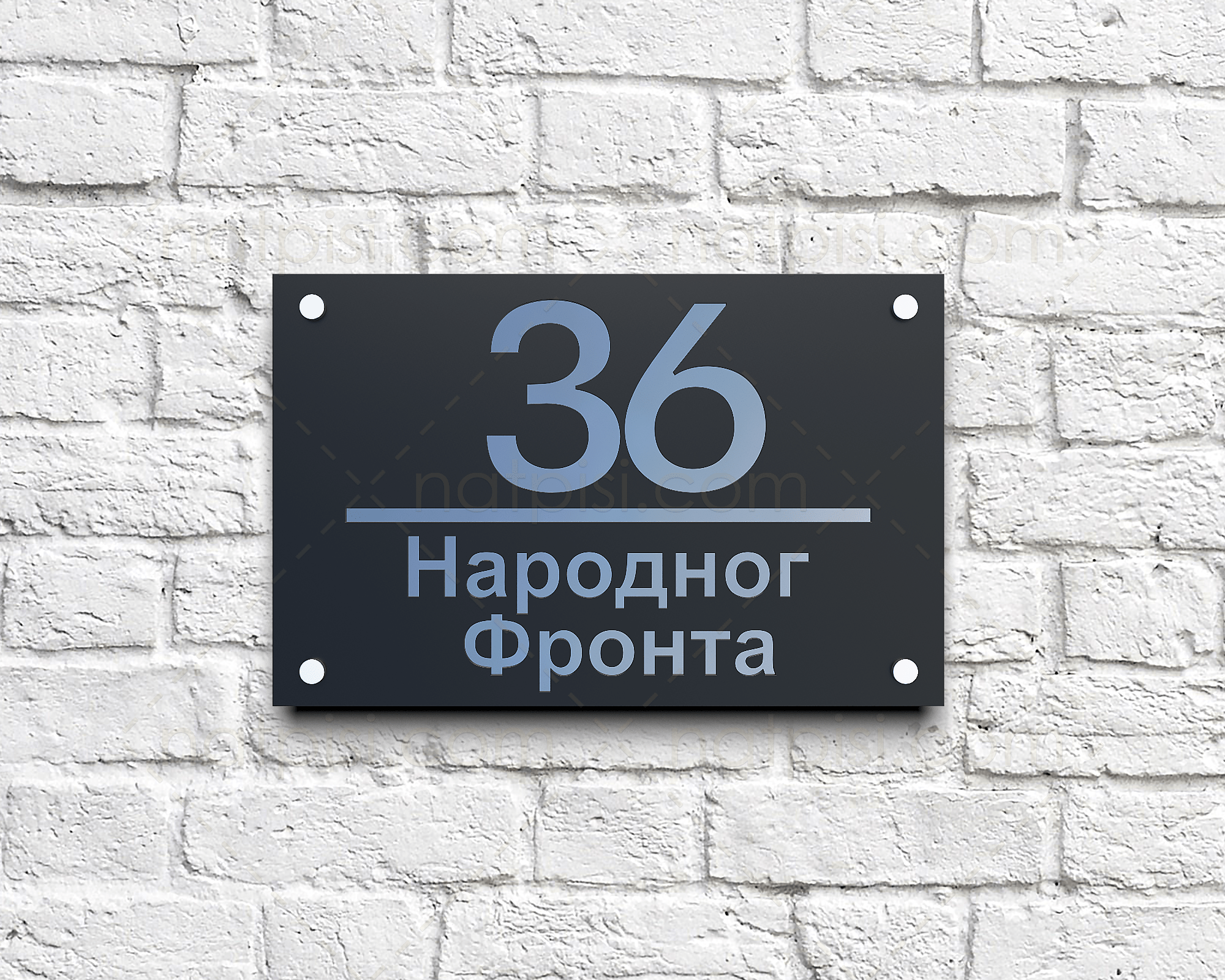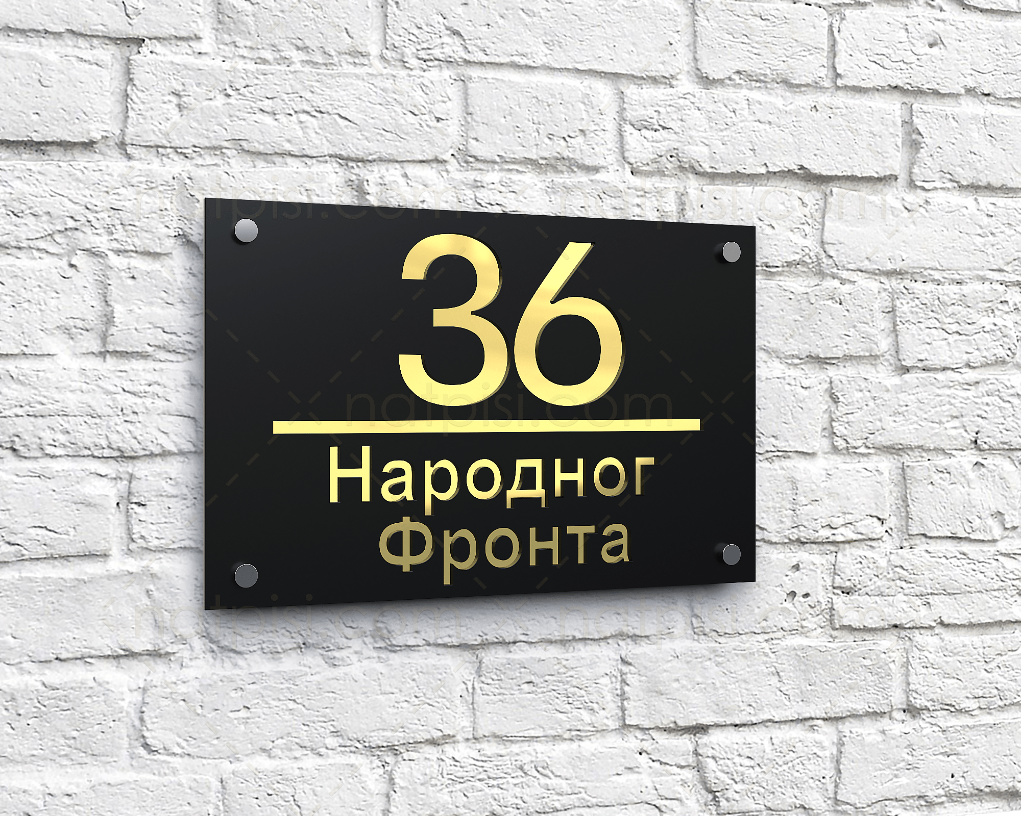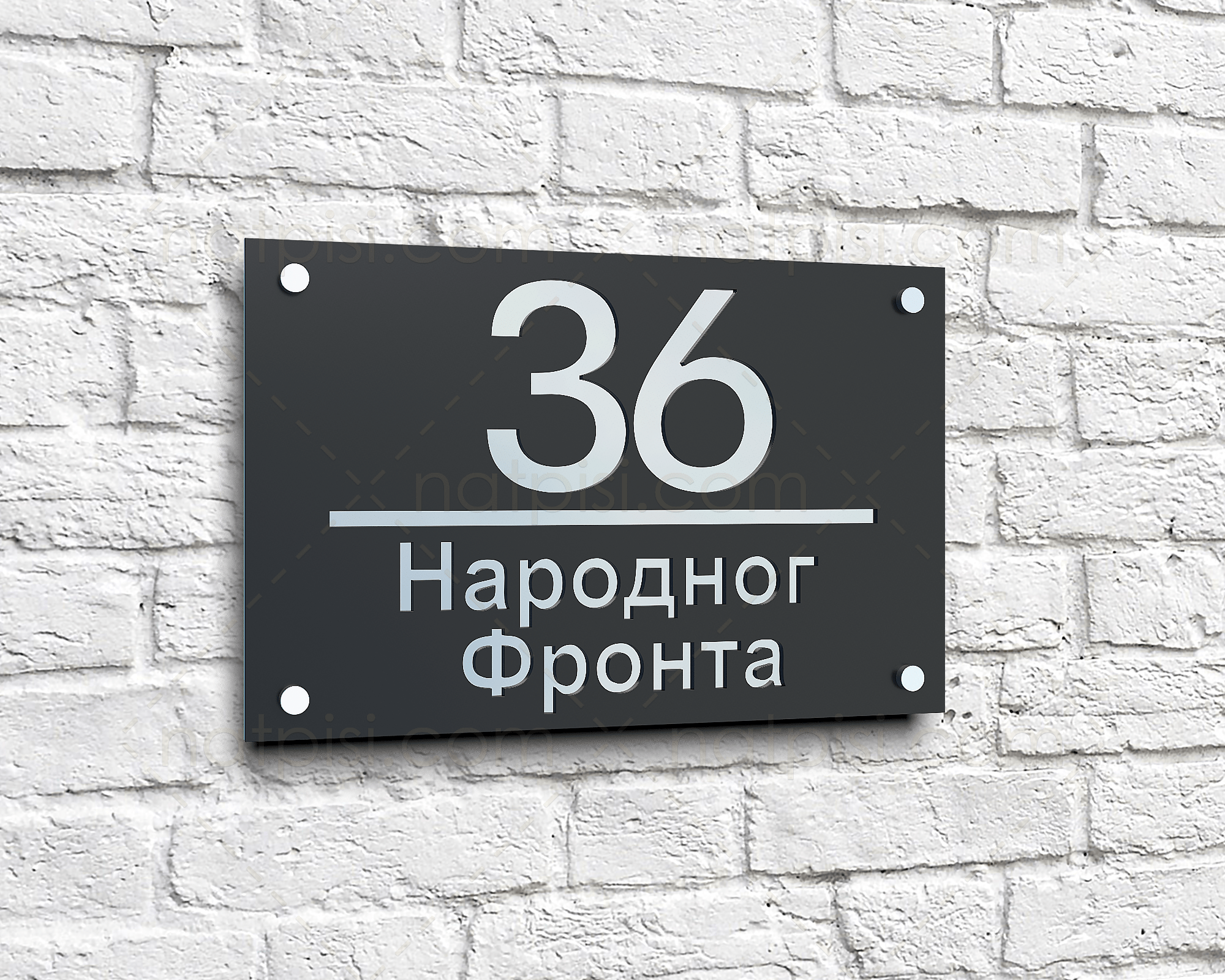 * Moderan kućni broj sa nazivom ulice izrađen od pleksiglasa debljine 3mm, u crnoj mat ili sjajnoj završnoj obradi.