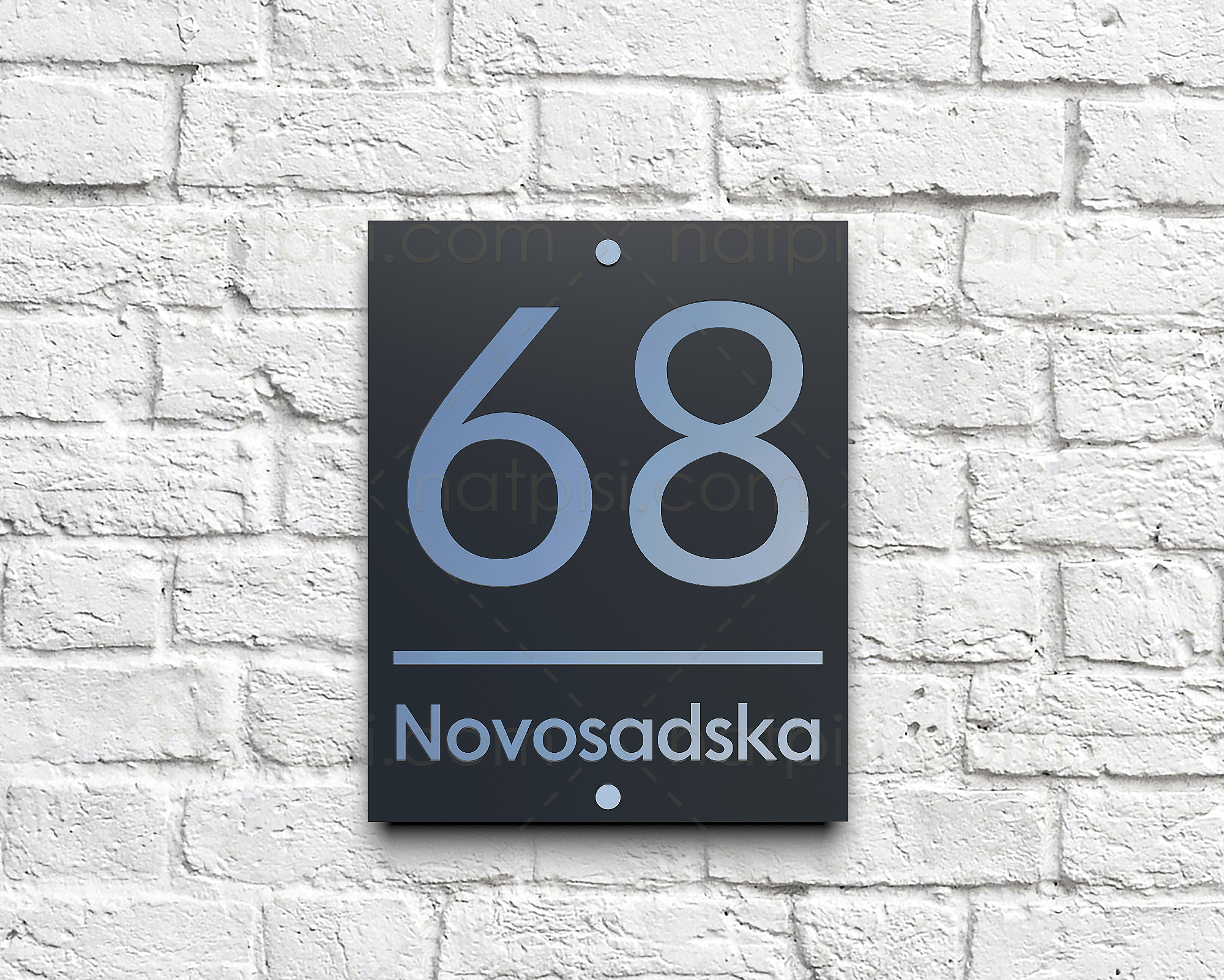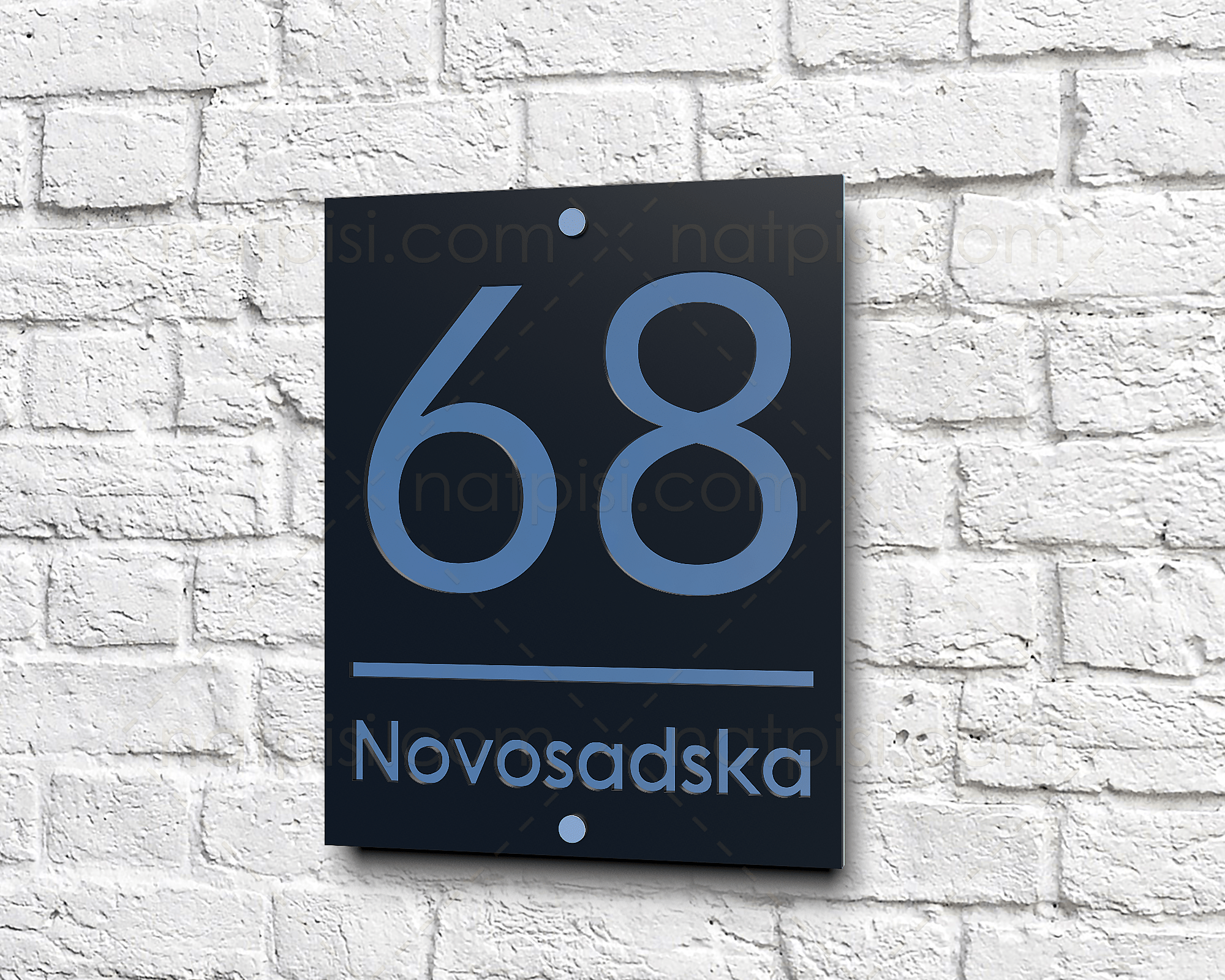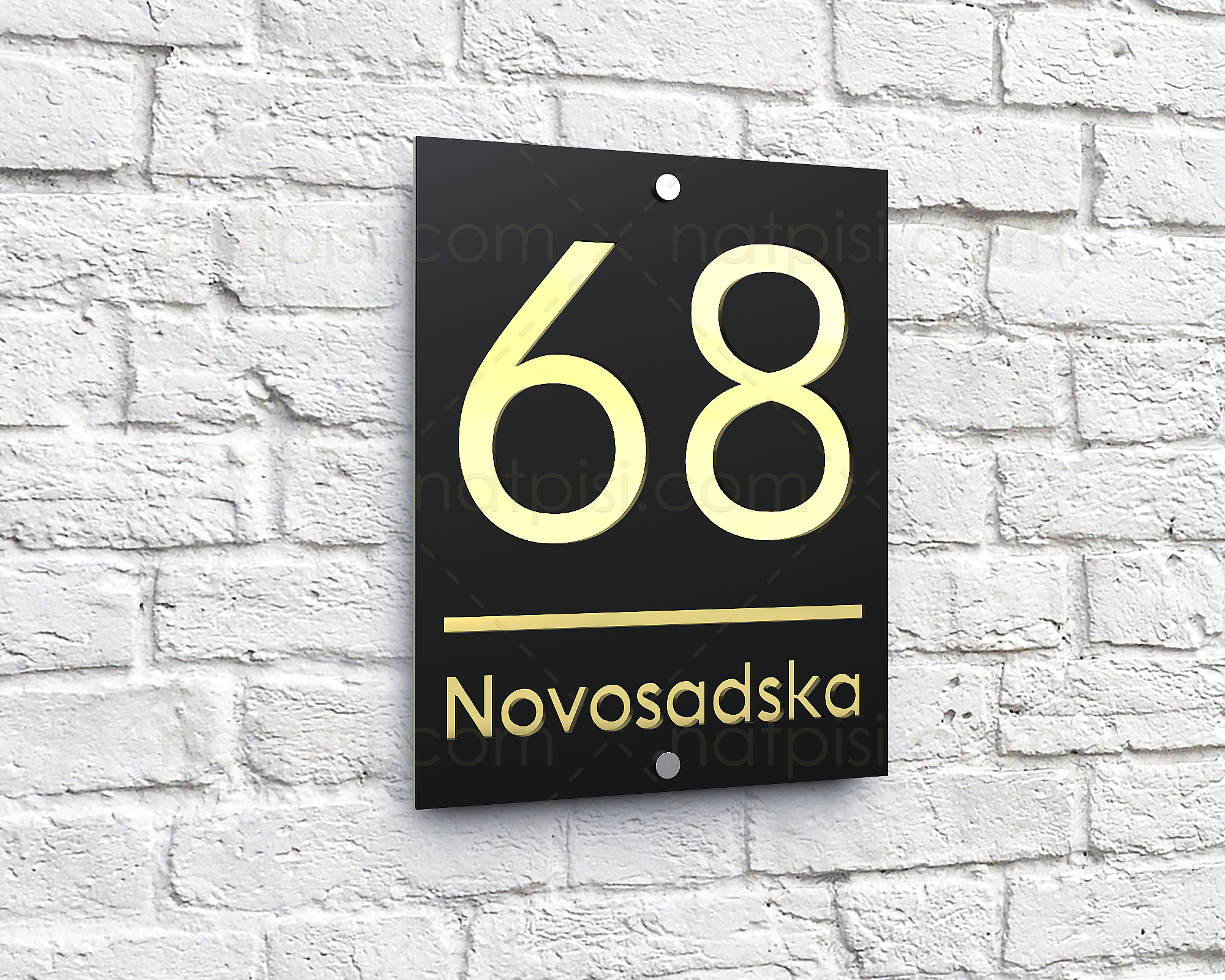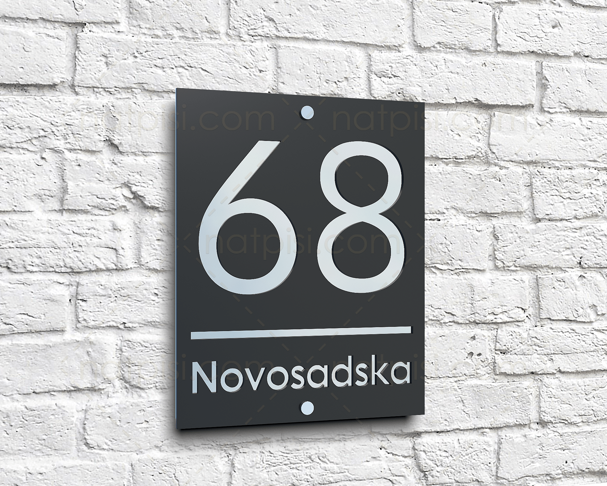 * Moderan kućni broj sa nazivom ulice izrađen od pleksiglasa debljine 3mm, u crnoj mat ili sjajnoj završnoj obradi.